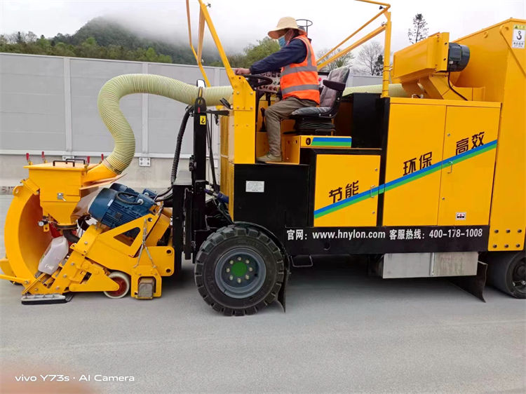 駕駛式路面拋丸機通過機械的方法把丸料(鋼丸或砂粒)以很高的速度和一定的角度拋射到工作表面上,讓丸料沖擊工作表面,以達到被拋射的表面粗化并去除殘留物的效果,與此同時除塵器產(chǎn)生的負壓會將丸料和清理下來的雜質(zhì)粉塵等回收經(jīng)過氣流清洗后,完好的丸料會自動循環(huán)使用,而雜質(zhì)和粉塵也會落入灰斗中